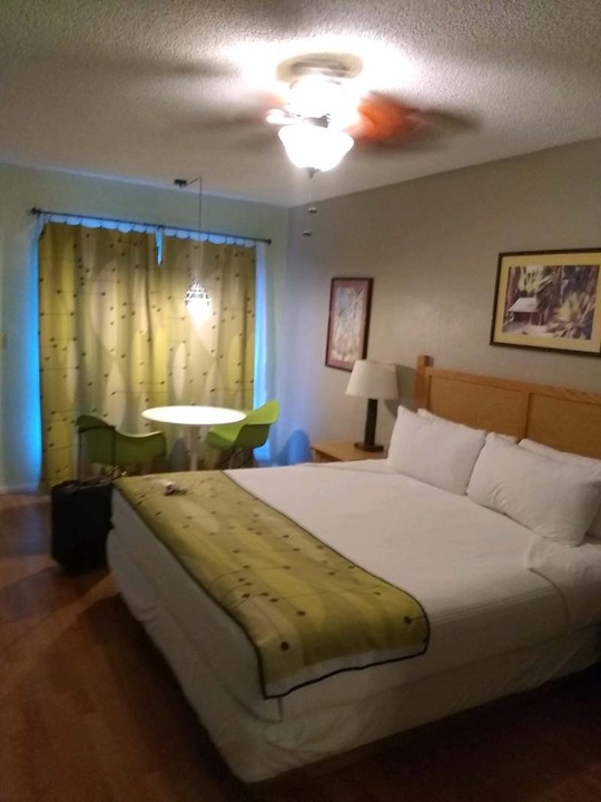 Upon entering the guest room, a comfortable bed, desk, and chair are set up, and a big screen is set up for people to use. Just outside of the bathroom is a refreshment area. You have a convenient coffee and beverage set-up area. No need to worry about setting off an alarm sensor if you nudge a $10 bag of pretzels or a $15 bottle of water. Experiences like this make the trip even less worry-some, the way it should be. The bath had excellent water pressure, something they lacked back home. They should bring that shower home with them. The bed was very comfortable, the late-night trip to the pool and spa was just steps across the parking area, and there was no long trek down multiple hallways and pathways.